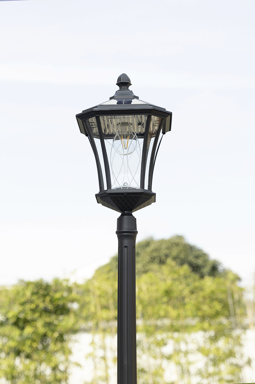 LUTEC-Single Head Outdoor Solar Post Light, Dusk to Dawn, 200LM, 2700K, 3.7V, Up To 8hour Runtime, Black(Head+Post)