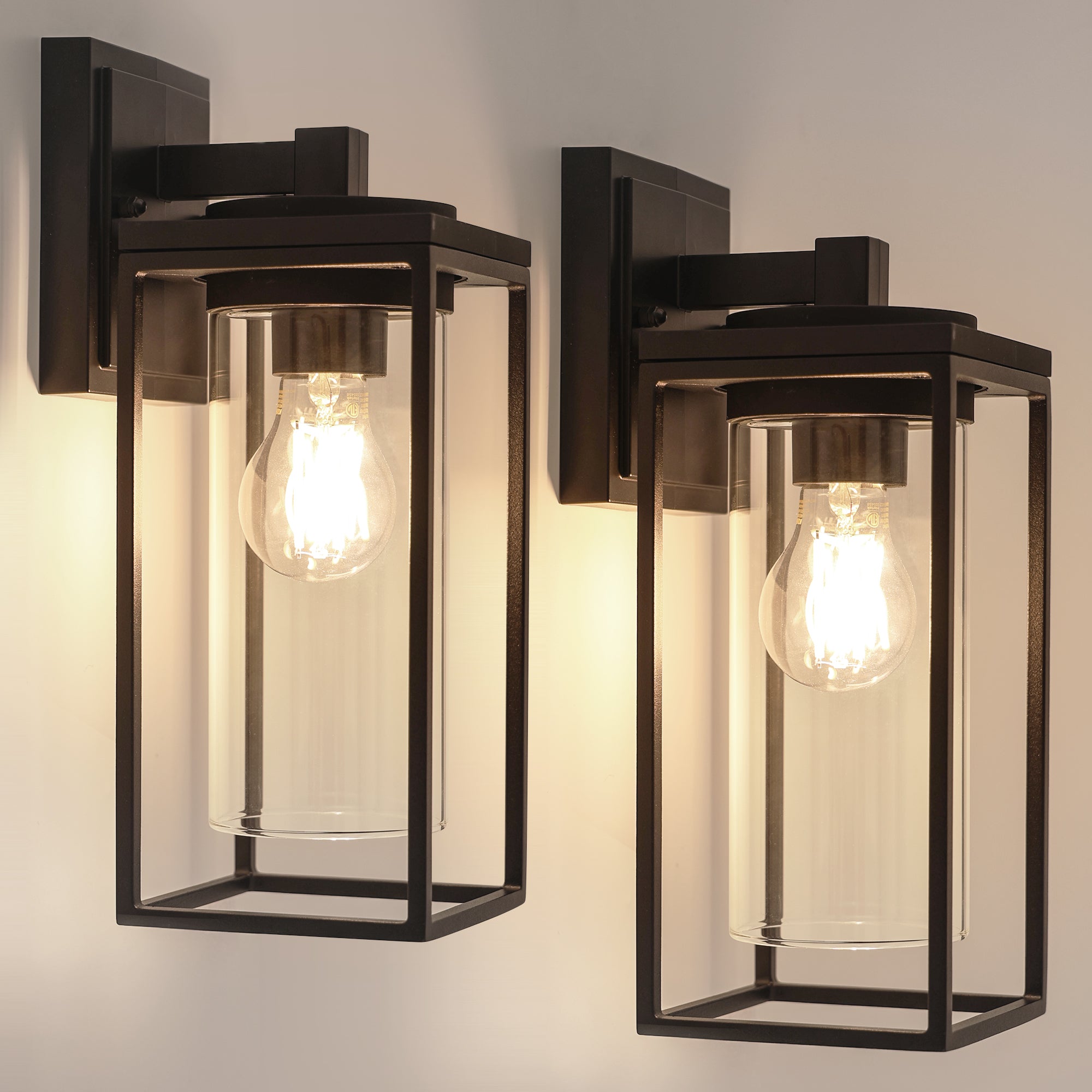 LUTEC 2 Pack Outdoor Wall Light Fixtures, Exterior Waterproof Lanterns with Aluminum Frame and Clear Glass Shade, Modern Matte Black Wall Sconce Outdoor Lighting for Patio, Front Door, Entryway