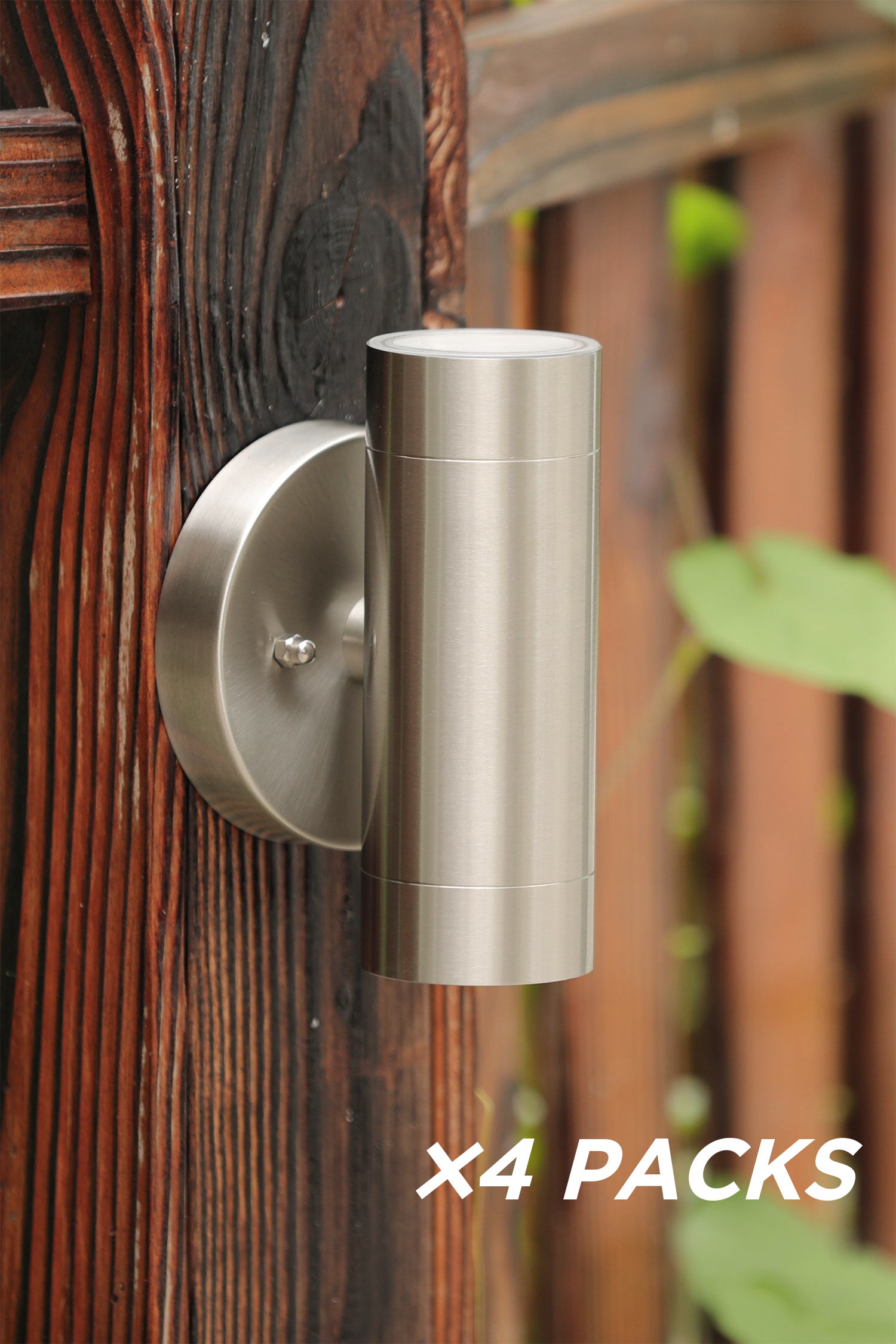 4 Packs LUTEC - 2-Light Brushed Stainless Steel Outdoor Integrated LED Wall Lantern Sconce, 3000K 11W 800LM, Silver Integrated Outdoor Wall Light