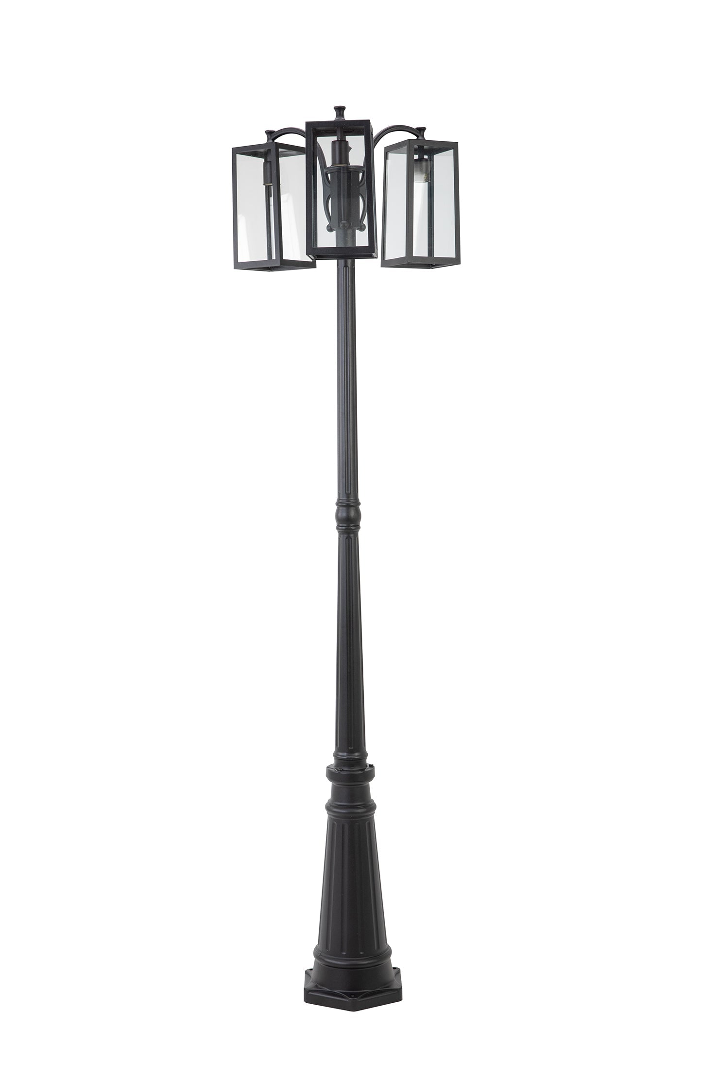 LUTEC-HIGH POST 3-Head Die-Cast Aluminum LED Outdoor Hard Wired Street Light (Head & Pole), Black