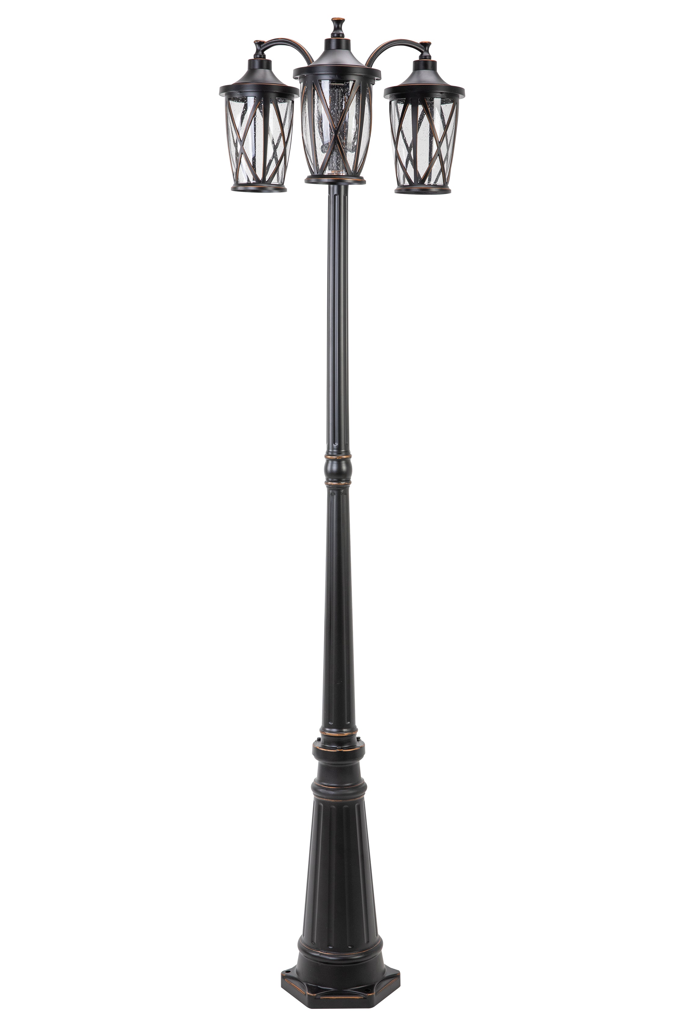 LUTEC-VINTAGE 3-Head Die-Cast Aluminum LED Outdoor Hard Wired Street Light (Head & Pole)