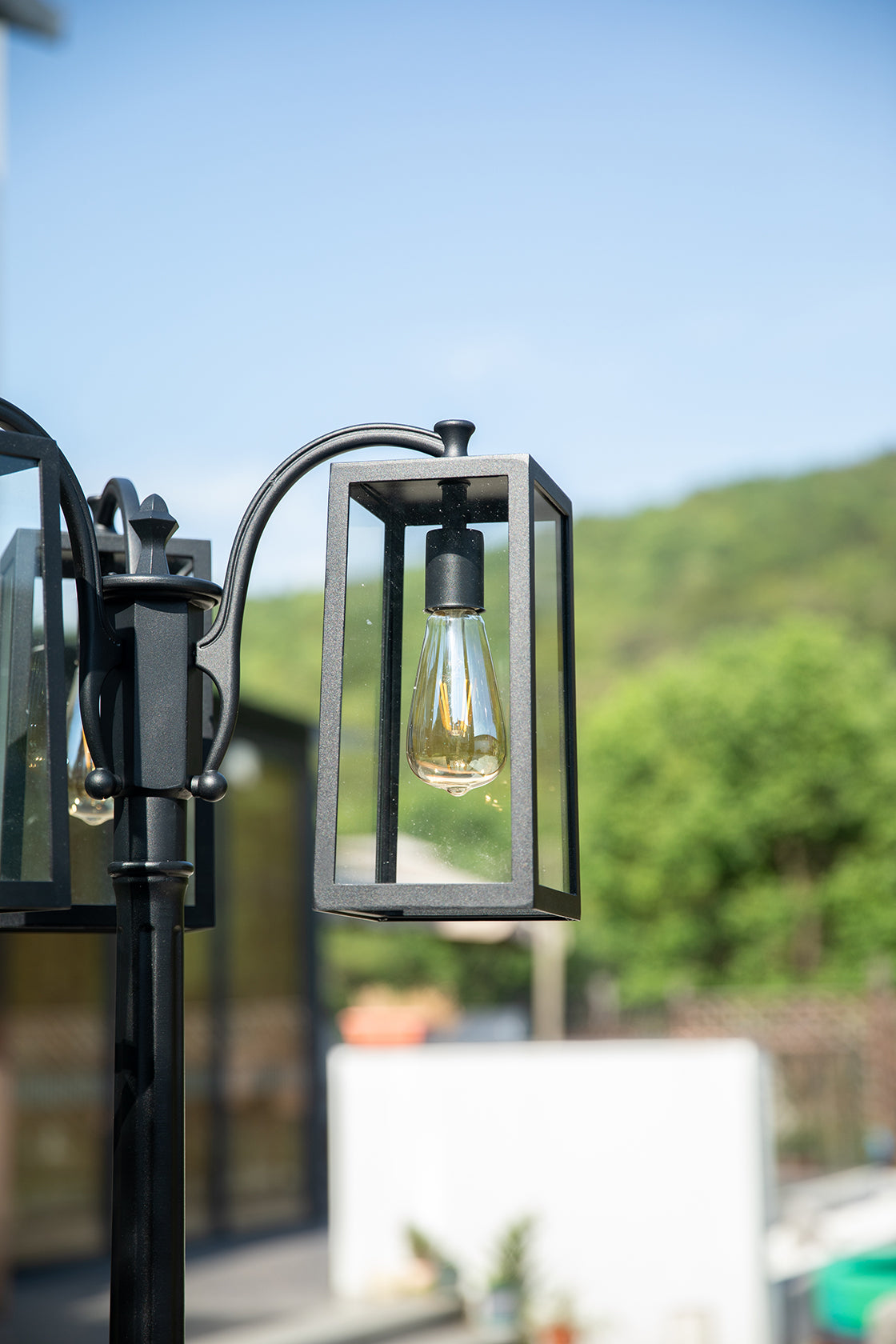 Our outdoor post light requires 3*Max. 100w E26 bulbs (Bulbs Not included). Head, post , mounting hardware are all included, easy to install and use. Hardwired design is perfect for installation near driveways, pathways, decks, gardens and more.