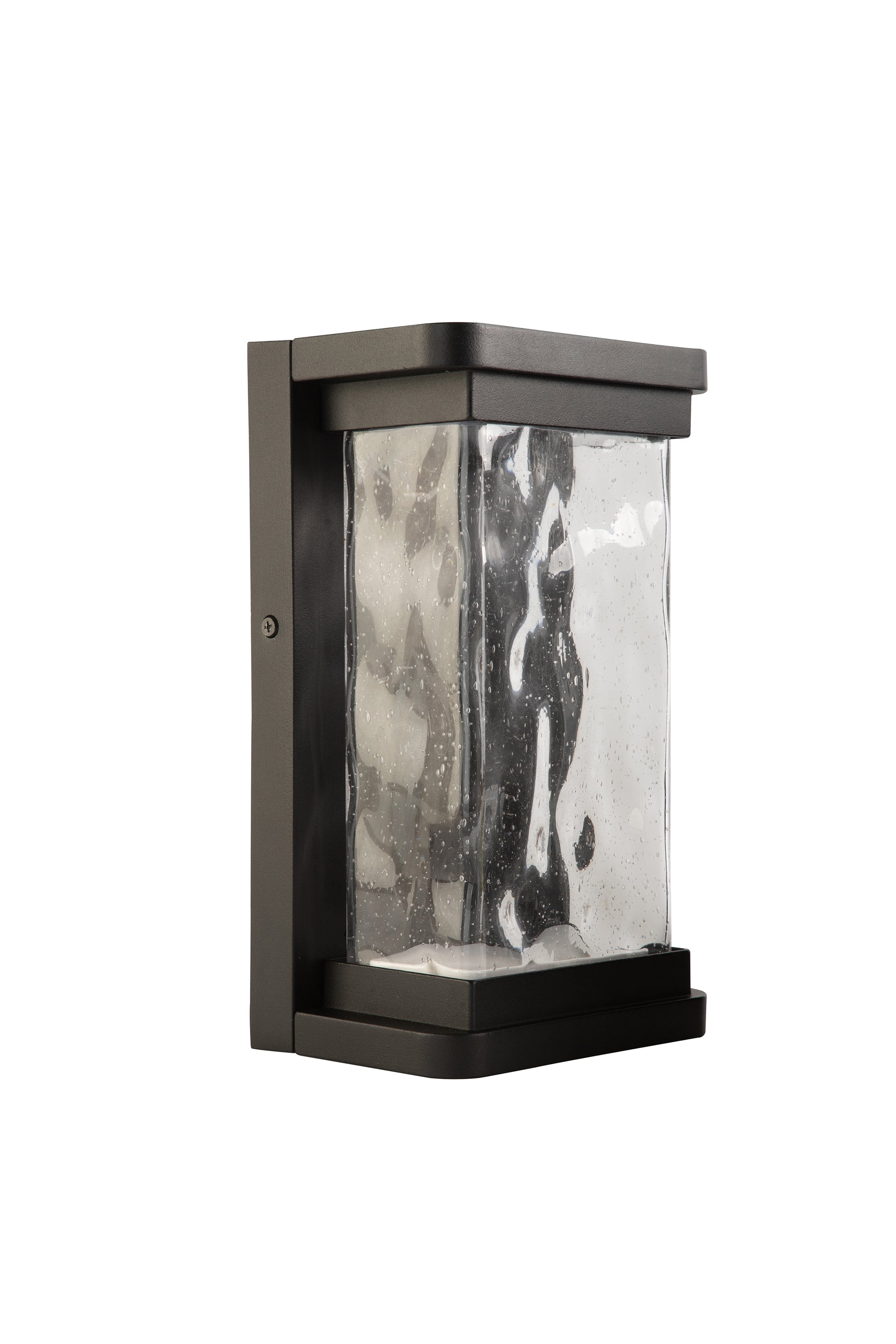Black Medium Outdoor Integrated LED Wall Mount Lantern with seeded glass. Enhances your curb appeal. Only uses 15 Watt of energy.