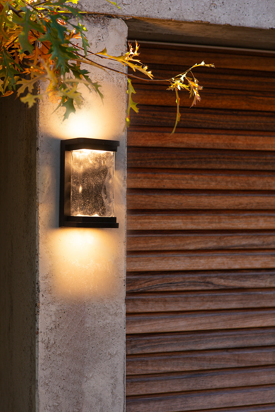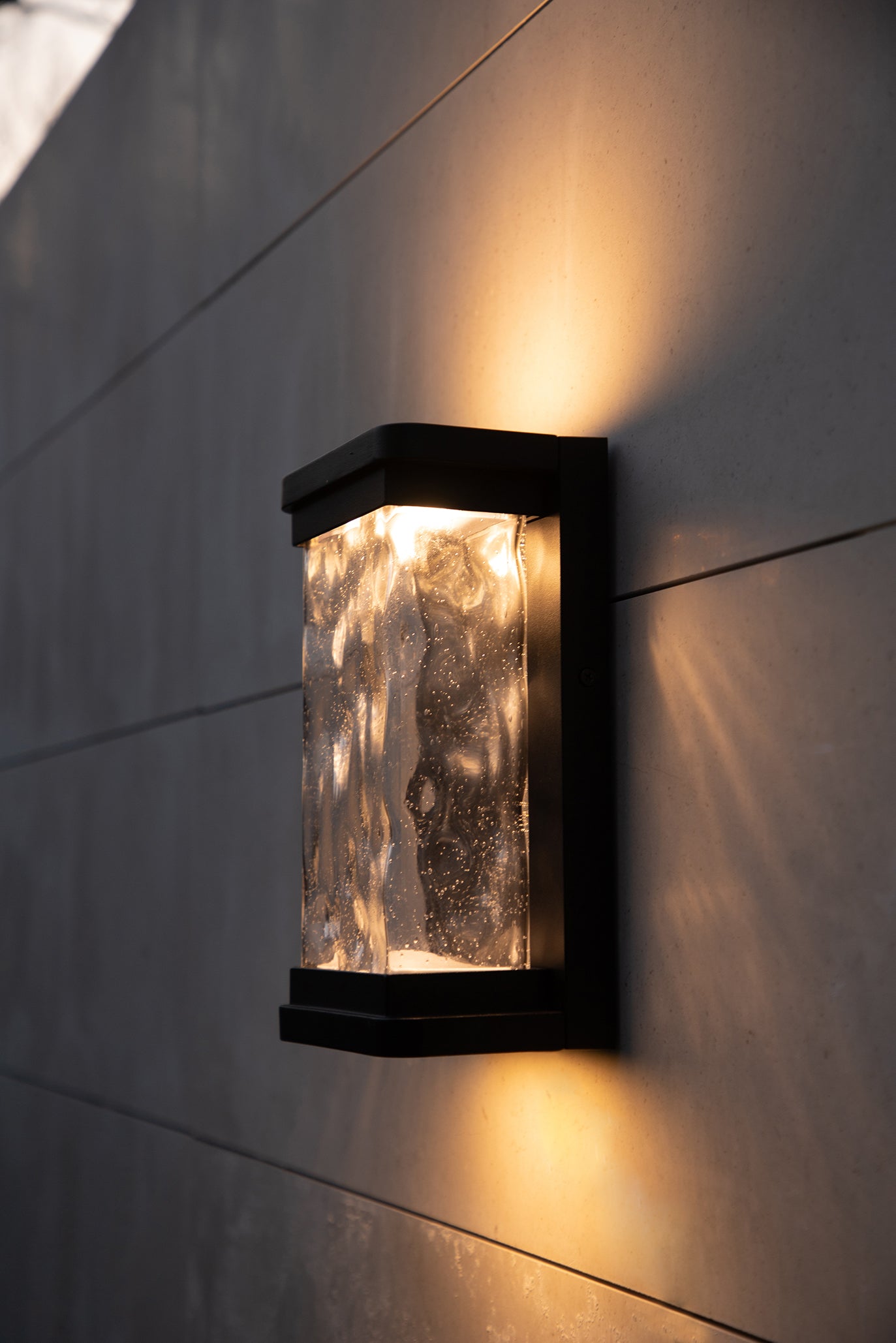 LUTEC-STARRY LED Outdoor Wall Sconce With Seeded Glass Surround, Dusk To Dawn, 15W,1000LM, 3000K