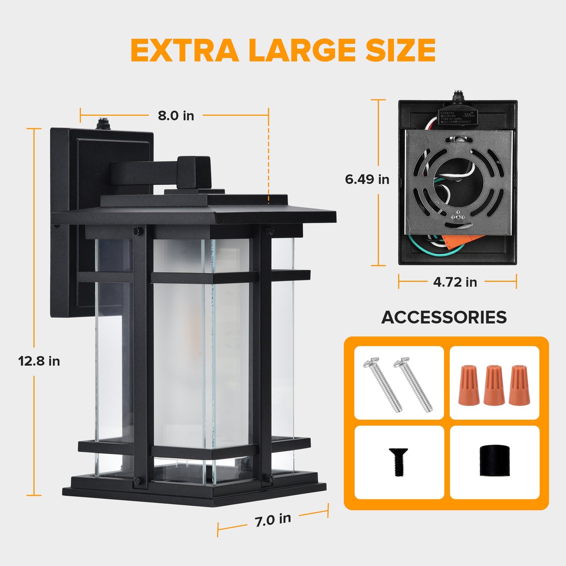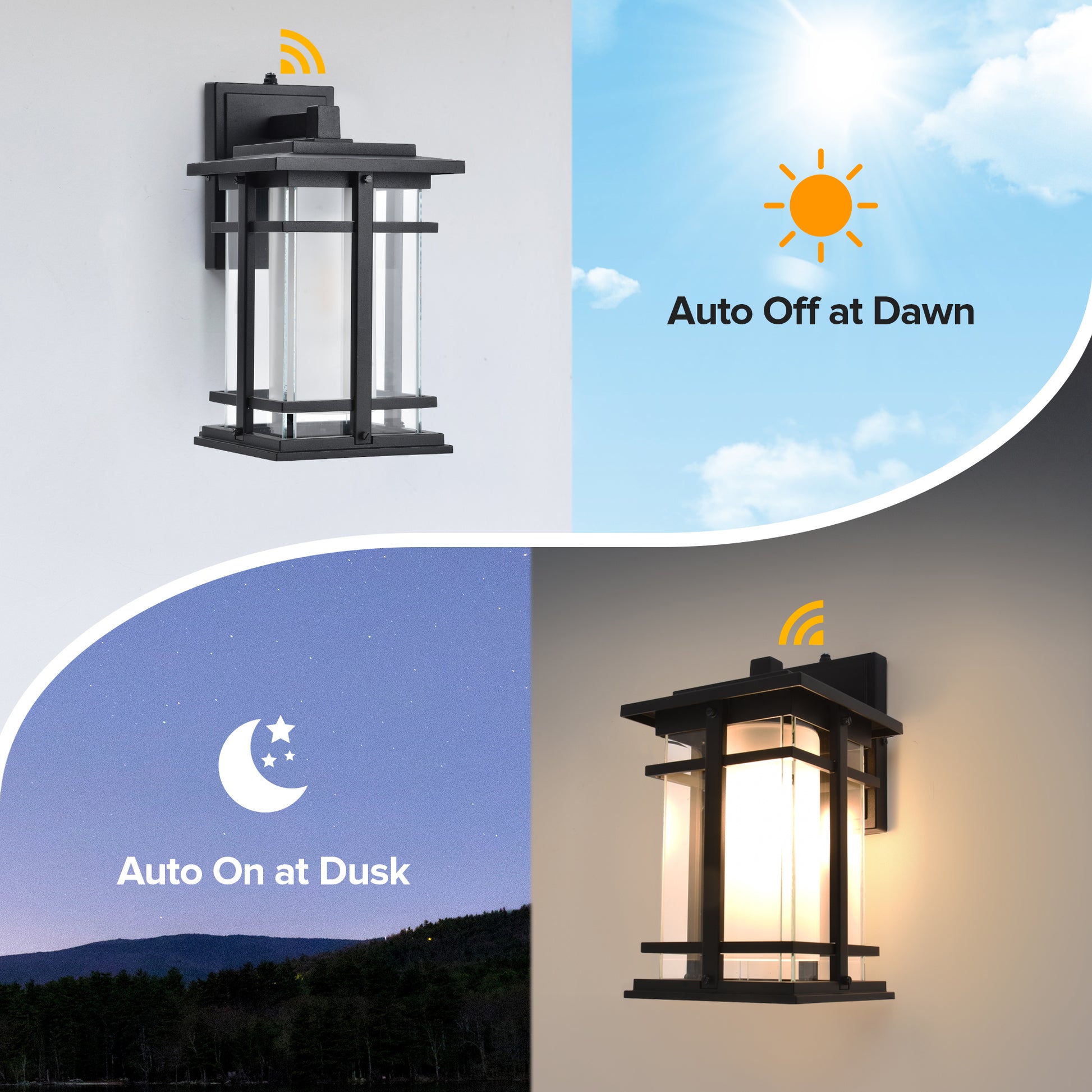 LUTEC 13" Dusk to Dawn Outdoor Wall Sconce, Matte Metal Frame and Double Glazing, Craftsman Style Outdoor Light Fxture with E26 Base, Waterproof Porch Light for Doorway