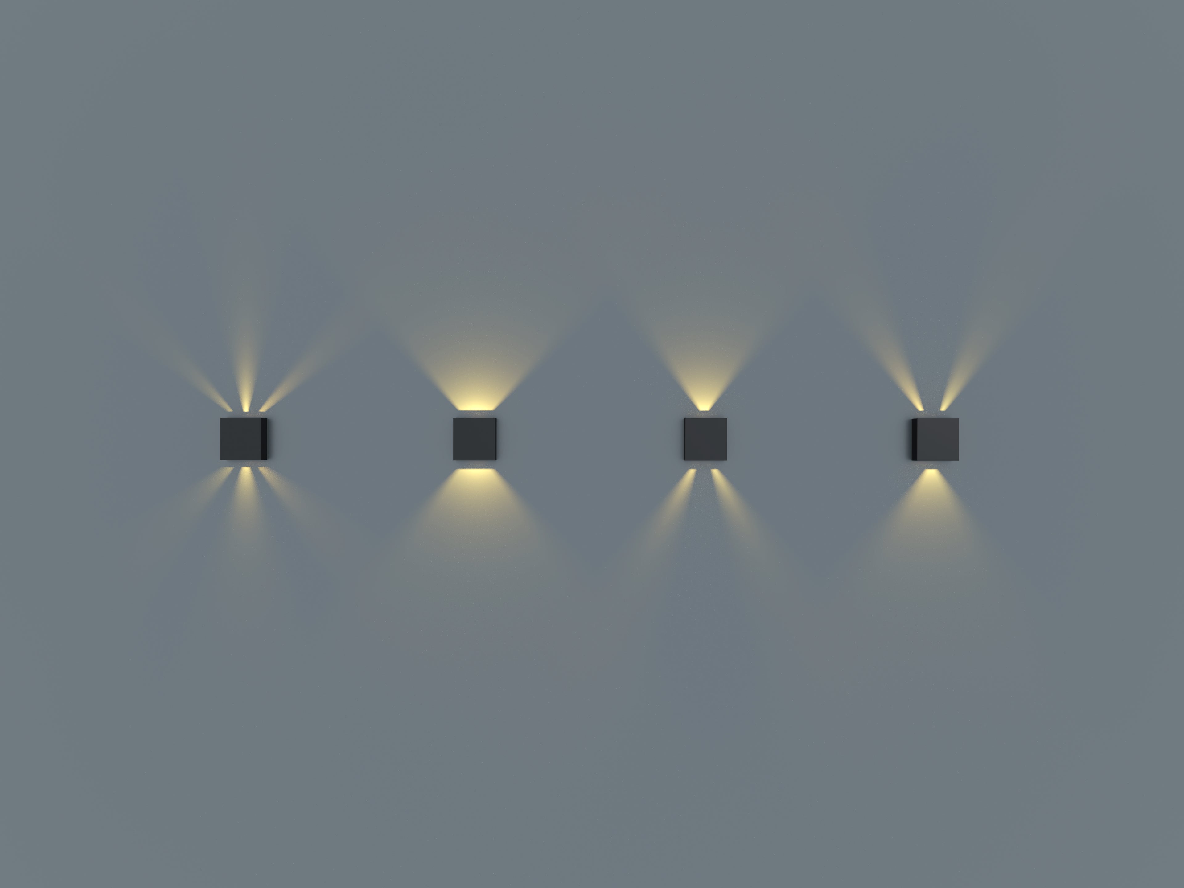 ·The light beams can be independently and continuously set to an angle from 0 to 106 degrees to create an interesting upward and/or downward light.