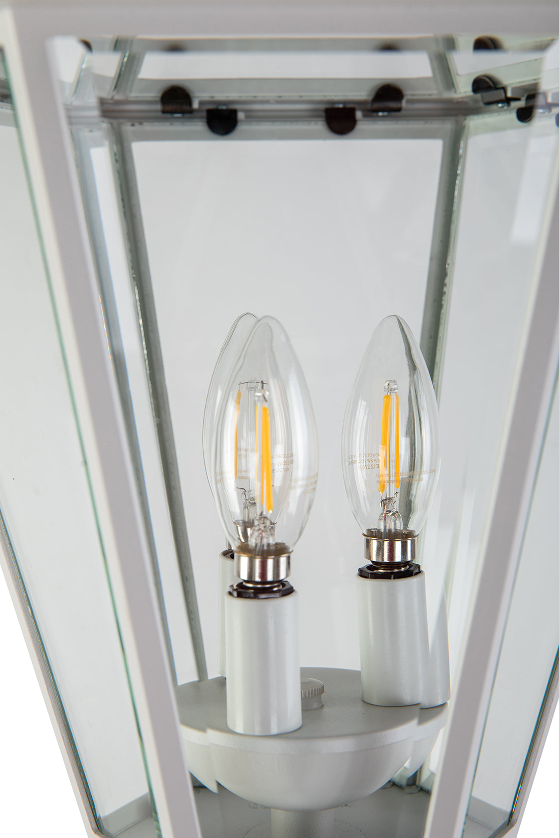 Designed with durable rust-resistant cast-aluminum construction with clear curve glasses for outdoor use in all weather conditions.Adds traditional styling and visual interest to the outside of your home.