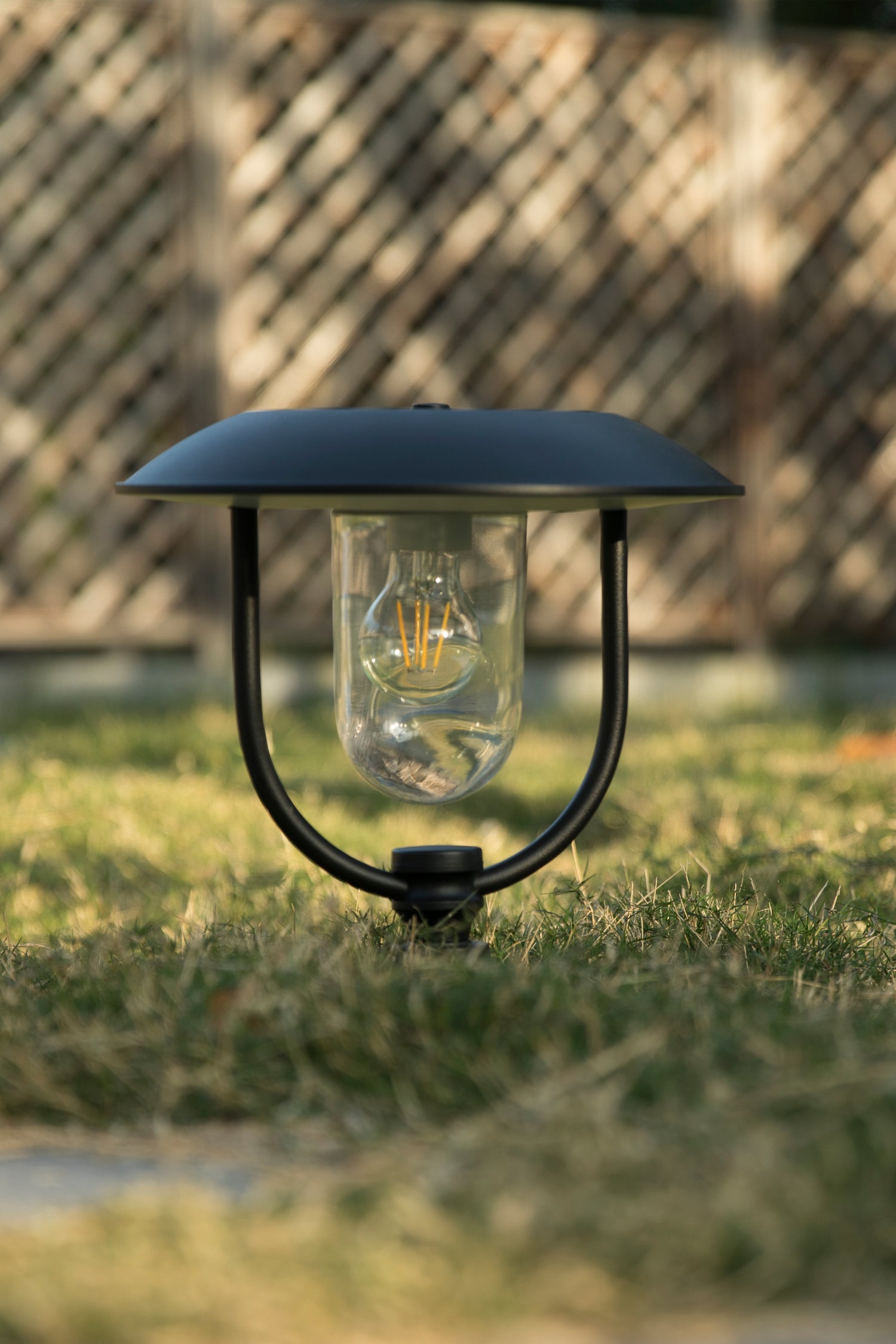 - Metal body and glass lampshade create the unique style of this post lantern. The minimalist design makes this fixture not only easy to install but also an excellent garden decoration.