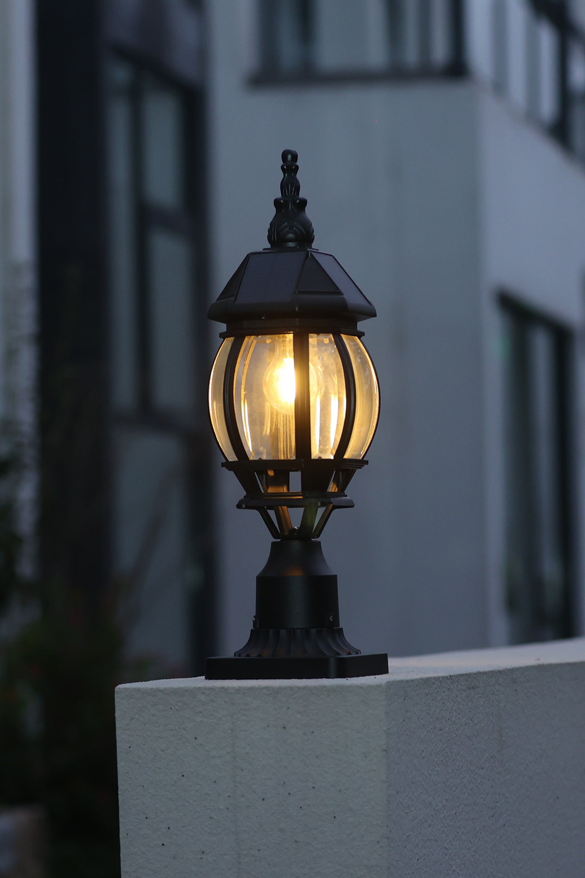 Our outdoor solar post light is programmed to automatically turn on at dusk and turn off at dawn. After 6-8 hours of charging during the day, the solar lamp post light illuminates for maximum of 8 hours.