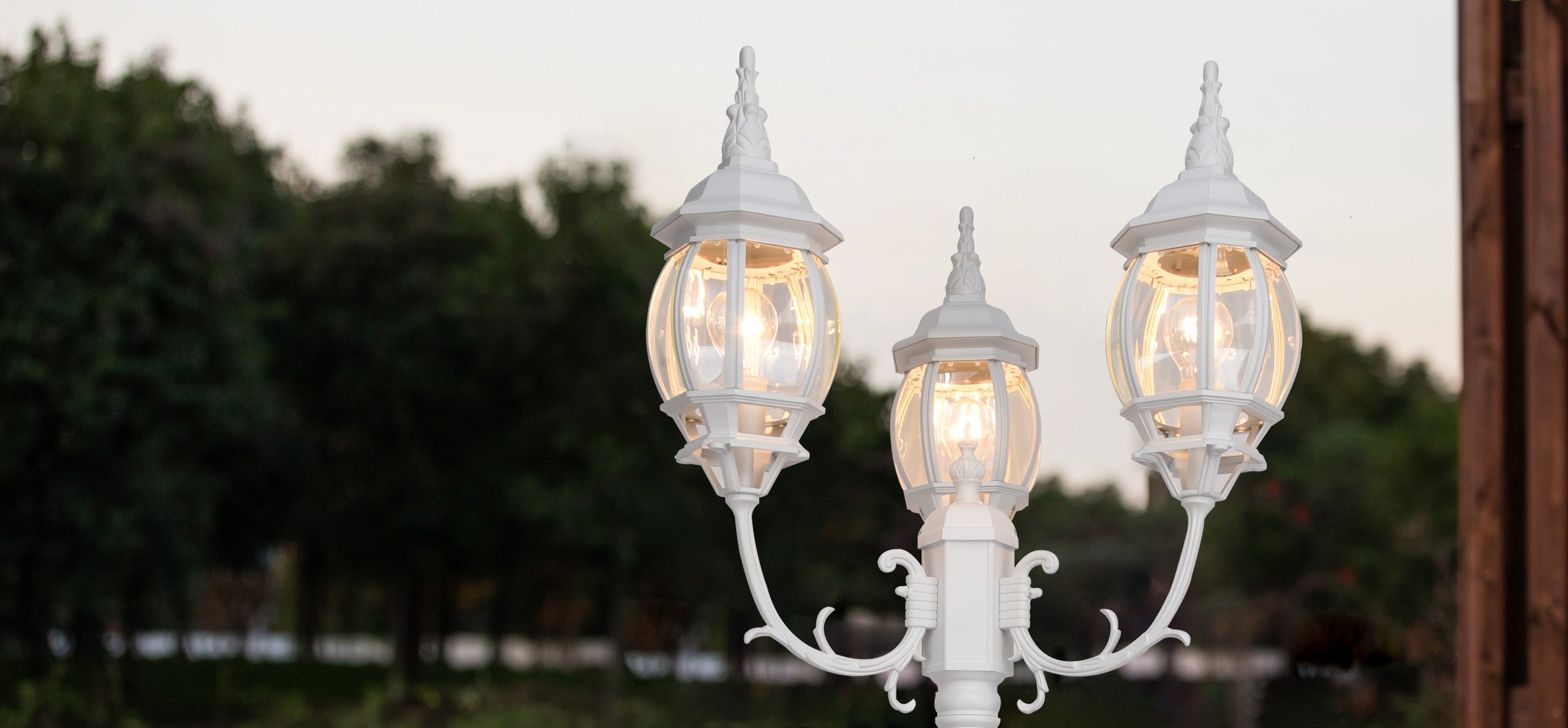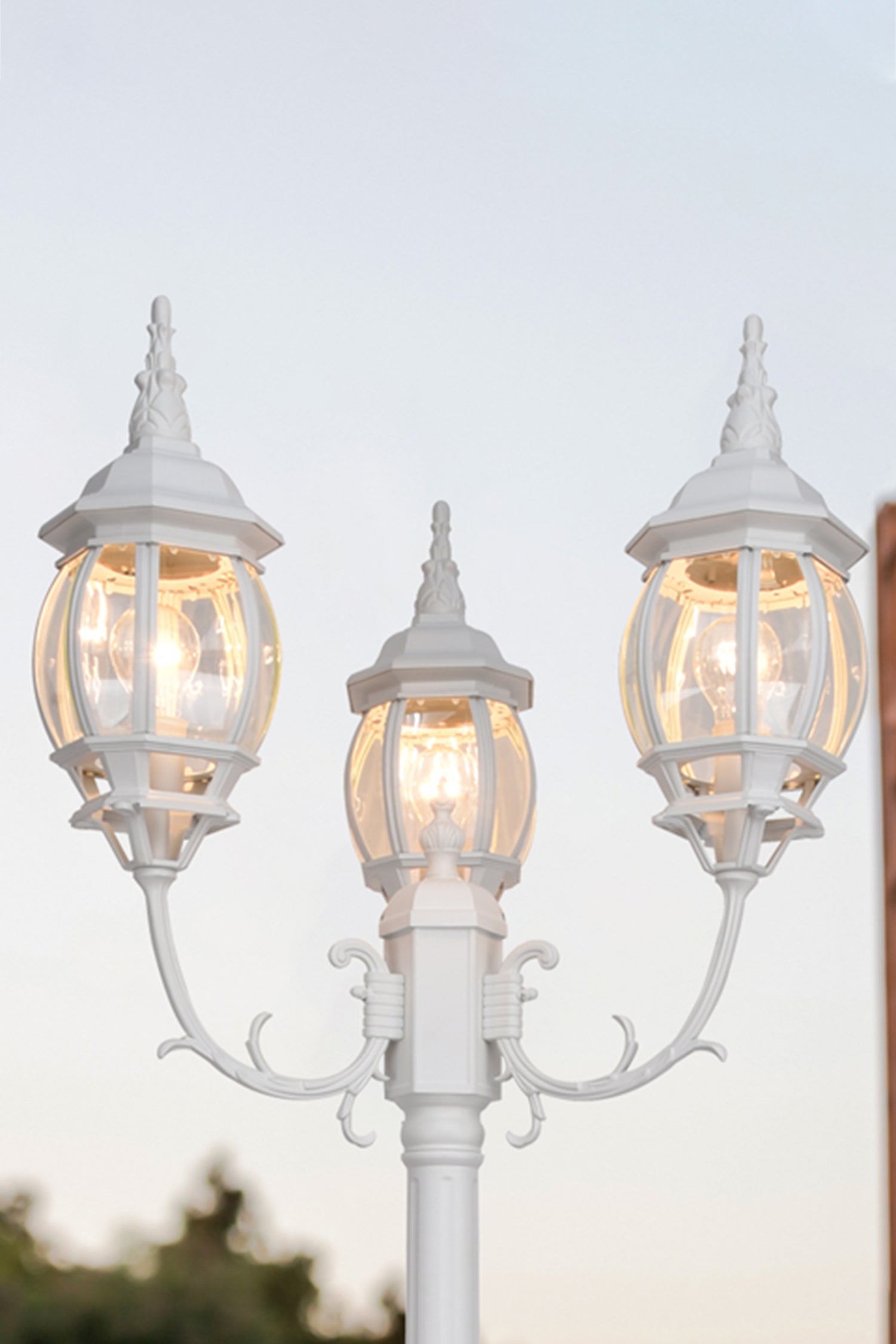 Designed with durable rust-resistant cast-aluminum construction with clear curve glasses for outdoor use in all weather conditions.Adds traditional styling and visual interest to the outside of your home.The 3-headed post light will help bring more brightness for your way home.